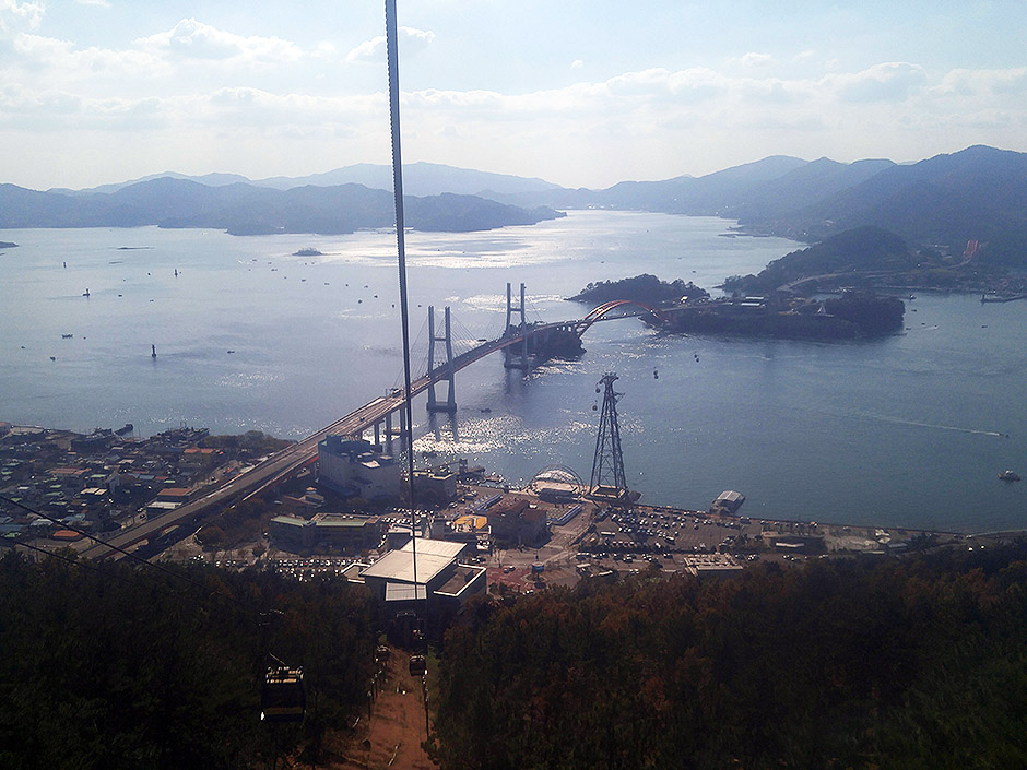 두번째 초양도에서 다시 바다케이블카를 타면, 왔던 바다길을 다시 되돌아서 이번엔 케이블카역 뒷쪽에 있는 각산 정상까지 올라갑니다. 산의 높이는 408미터 이며 정상에는 봉수대가 있습니다. 산 정상에서 다도해와 사천시내를 내려다 볼수 있습니다. 아 그리고 아이티 강국 아니랄까봐 산 정상에서도 무료 와이파이가 되더군요.