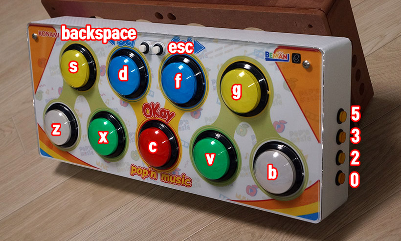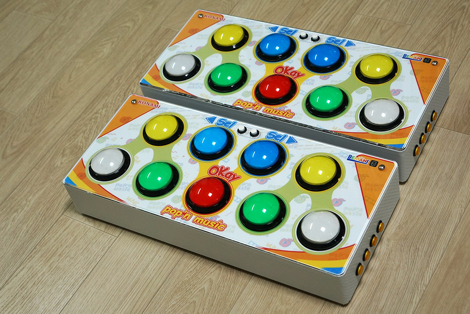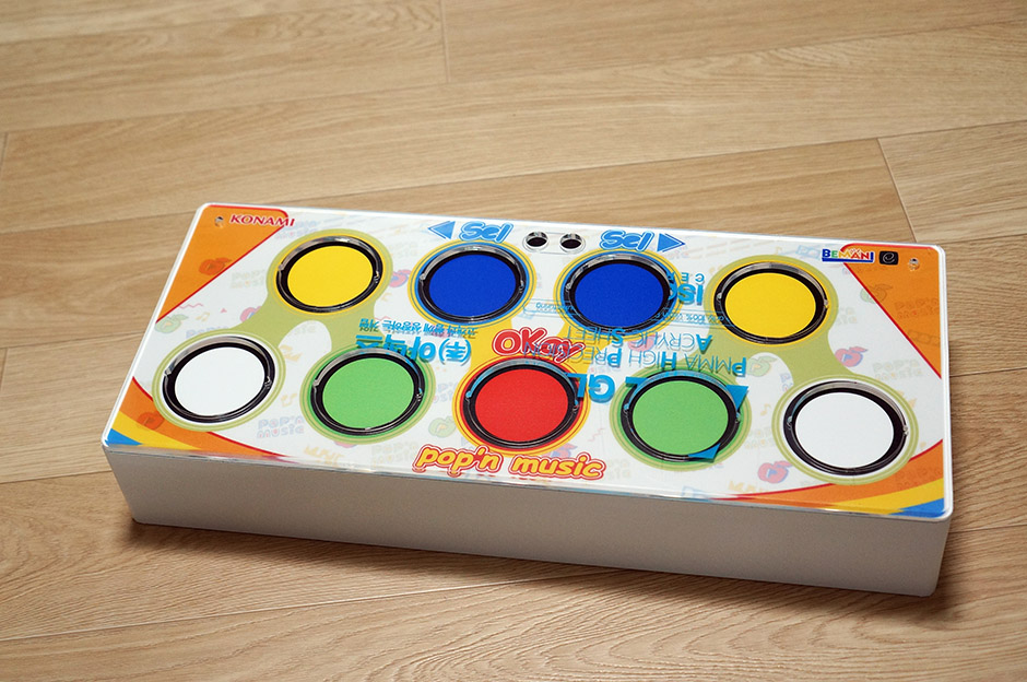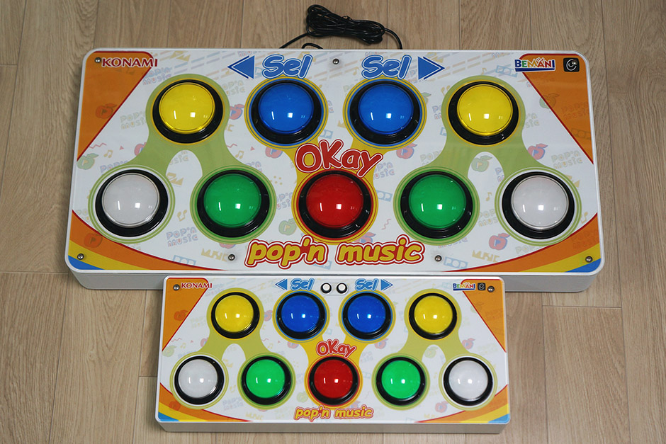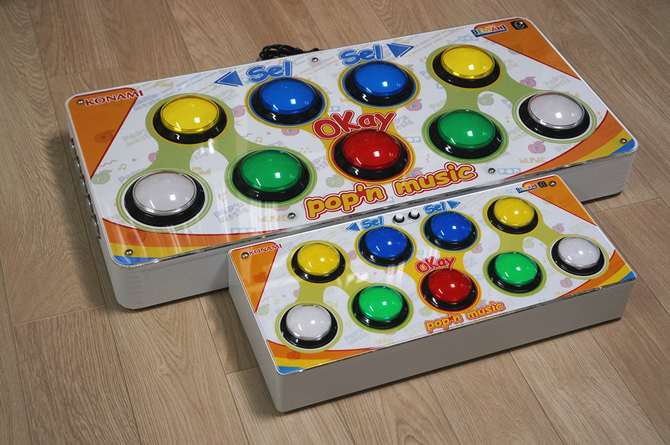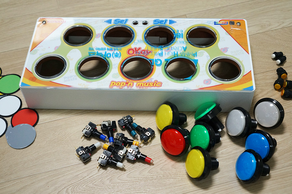 코나미의 리듬게임인 팝픈뮤직의 미니 사이즈 컨트롤러(줄여서 팝픈콘)를 만들어 보았습니다. 이미 아케이드와 동일한 풀사이즈 ASC 컨트롤러를 만들어서 가지고 있습니다만, 좀더 작은 녀석을 만들어 보고 싶었습니다. 그래서 기존 100mm 버튼이 아닌 60mm 버튼을 사용하여 소형화해보았습니다.