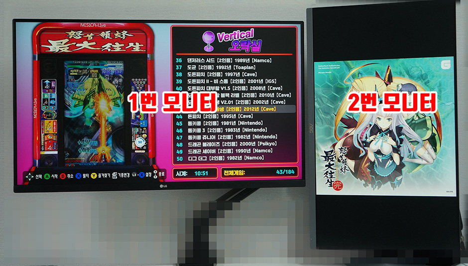 게임목록 화면이나 가로형 게임 플레이시에는 1번 모니터를 사용하고,