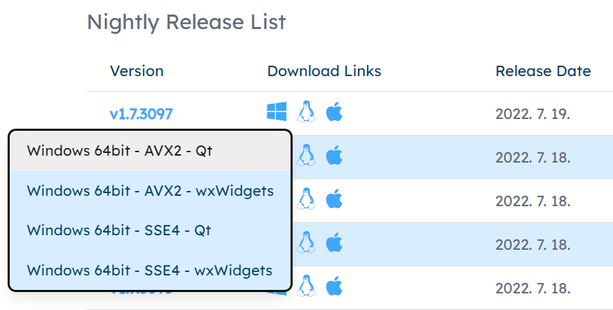 다운로드는 아래 사이트에서 Nightly 버전을 받으면 되는데요,