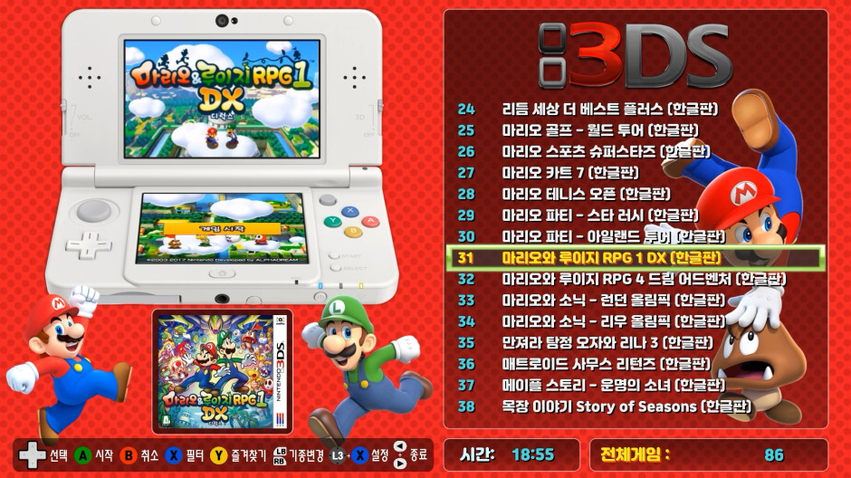 또 다른 변경점은 DS, 3DS 같은 경우 스크린이 2개씩이라서 기존에는 게임의 미리보기 동영상을 위 아래 따로 따로 하나씩 분리된것으로 구비하고 있어야 영상표시가 가능했으나, 이번 1.5버전에서는 기존과 같은 분리형 동영상 뿐 아나리, 상/하 일체형 동영상까지 모두 지원하도록 하였습니다.
