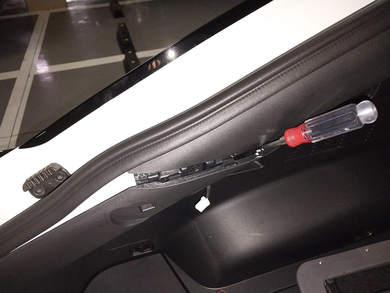 틈새 사이에 LED 스트라이프의 선을 넣어서 아래로 내려주면, 트렁크 순정등을 탈거했던 구멍으로 전선이 나옵니다.