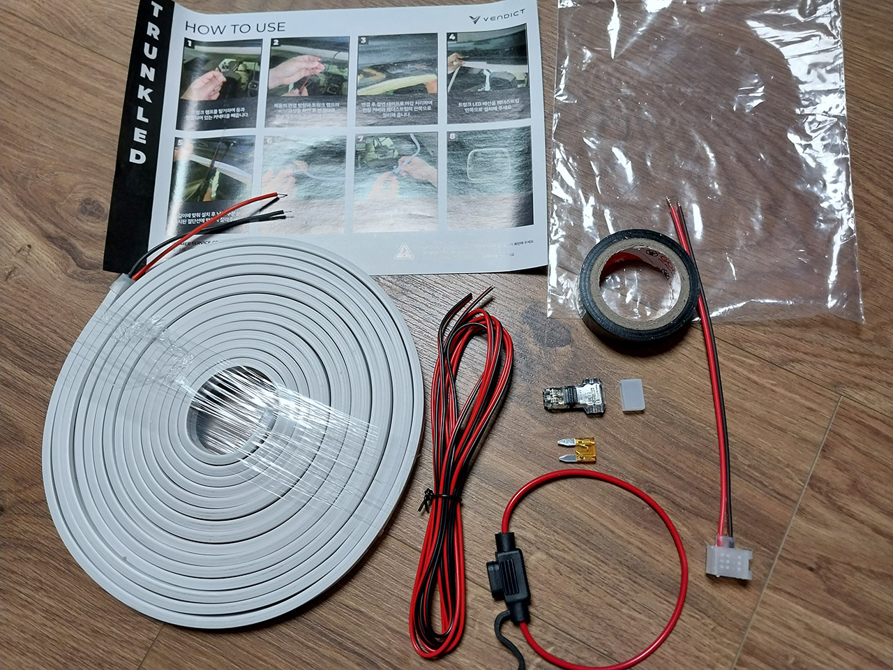 LED 스트라이프 (식빵등) 을 차량 트렁크 고무몰딩 틈사이로 넣어주고,