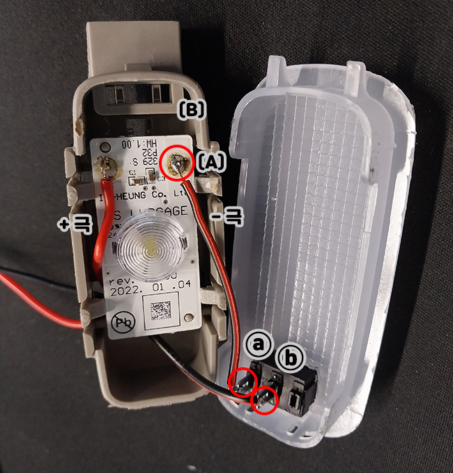 순정 트렁크등을 탈거한후, 커버를 벗기면 아래 사진과 같이 내부 기판이 보입니다.